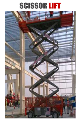 Scissor Lift is a type of platform which can only move vertically. The mechanism to active this is the use of linked, folding supported in criss-cross ‘X’ pattern. The platform will have an extending ‘bridge’ to allow closer access to work area. They are designed to provide larger platform work areas and has safe working load 1000KG’s. Electric machines comes with non-marking tyres.